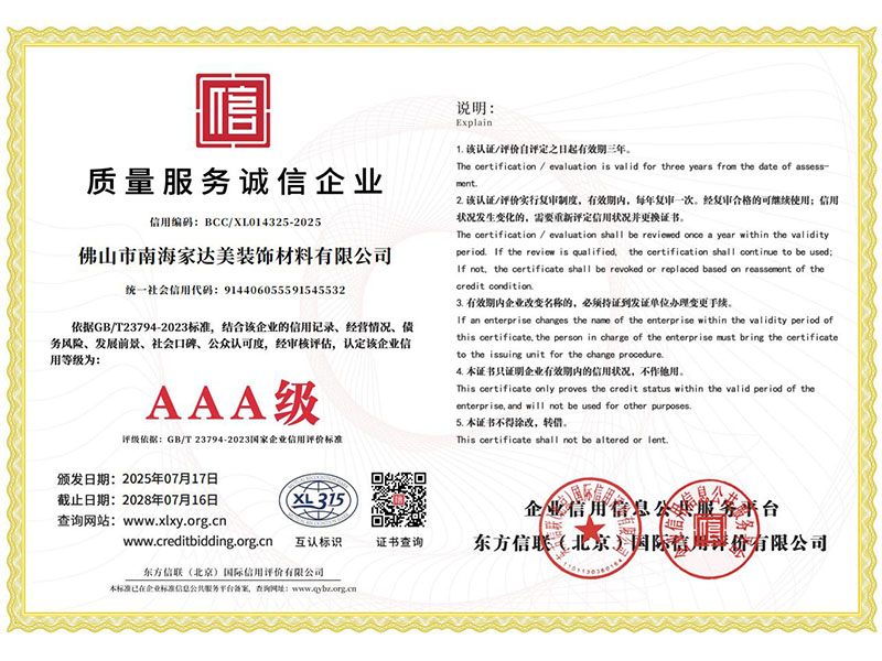 版權所有 佛山市南海家達美裝飾材料有限公司
